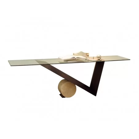 Valentino Console is the perfect solution to create a little design corner. The wood base and the marble cylinder match perfectly with the clear glass top. Available in different sizes and finishes. It is possbile to have it also with a smoked glass top. Contact us for more information.