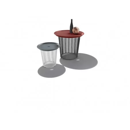 Berry outdoor besteht aus einem Untergestell aus Leichtmetall, das sich durch ein minimalistisches Design auszeichnet, das eine Reihe von kleinen vertikalen Stäben bildet, und einer Keramikplatte in einer breiten Farbpalette.