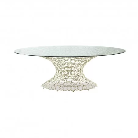Mondrian Art Form by Cantori is a table with a classic and elegant design. It has a metallic base and a glass top. Available in different sizes and finishes.