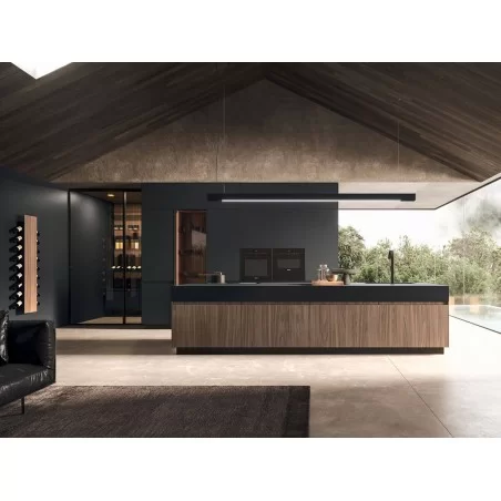 不透明 soft- 触摸厨房岛上的防指纹表面有助于带来令人愉悦的触感。大尺寸的Fenixtop隐藏在内部的舒适和深抽屉。内部抽屉和深抽屉采用专门设计的系统,用于存放餐具、花盆和厨房中通常每天使用的所有其他设备。
