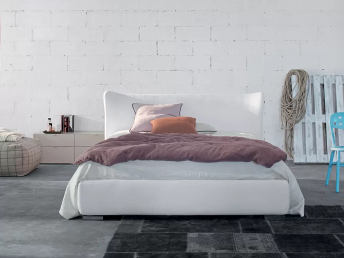 Calvin, designed by Enrico Girotti for Twils, is a contemporary interpretation of a classic style. The distinct contour of the headboard soars upwards the light and embraces its surroundings. This model signals the transition from soft, the traditional concept of upholstered beds, to light. The silhouette is graceful, highly linear and contemporary, a visual treat from any angle, ideal for the free standing. Available in different fabrics and sizes. Under request, it is possible to have it also with the storage. Mattress not included.
