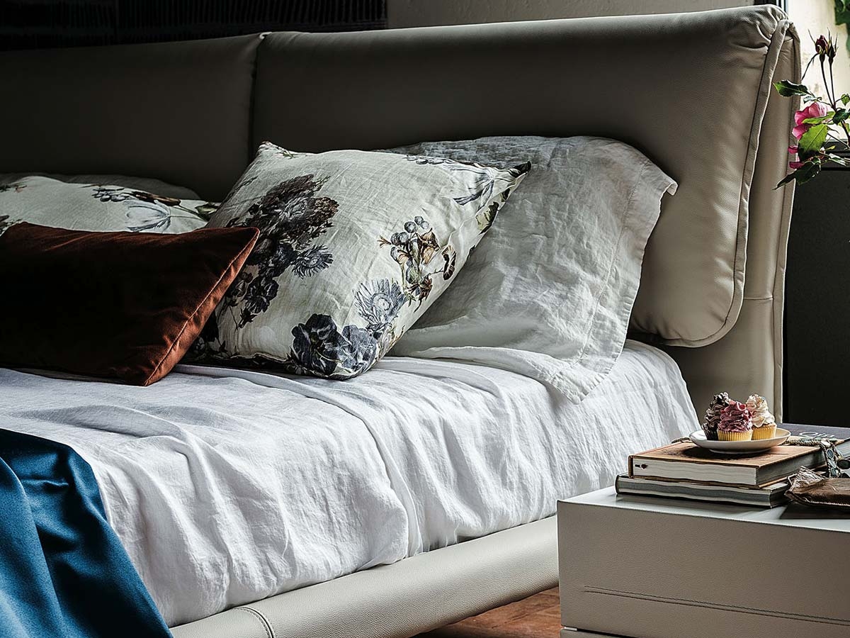 Adam is a double bed covered in leather or synthetic leather by Cattelan Italia. Thanks to the elegant and simple design, Adam is the perfect solution for a modern bedroom. It has a solid structure and four feet in Canaletto walnut or burned oak. Available in different colors and sizes. Slats included. Mattress not included.