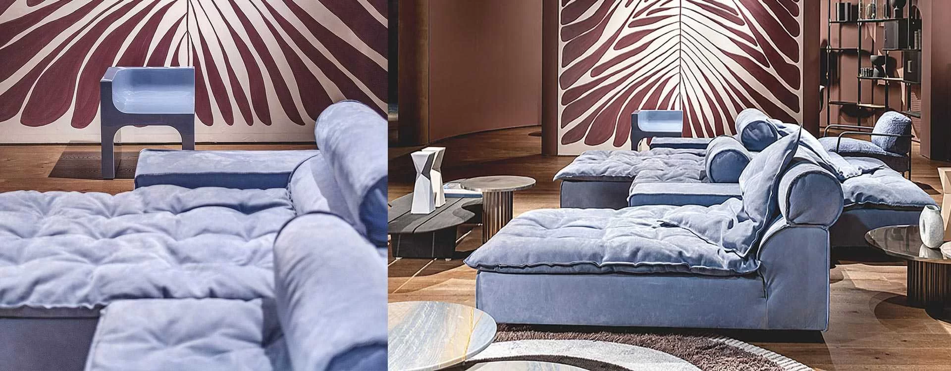 Mit der neuen Baxter-Kollektion 2022 kommt das Sofa Miami Soft. Paola Navone schafft es erneut zu verblüffen, indem sie die Version 2.0 des Bestsellers Miami Roll vorschlägt. Ein Sofa, das die Kernpunkte seines Designs beibehält, immer linear und sauber, aber mit dem ganzen Charme der weichen und einladenden Sitz- und Rückenkissen, für ein neues Entspannungserlebnis zum Ausprobieren.