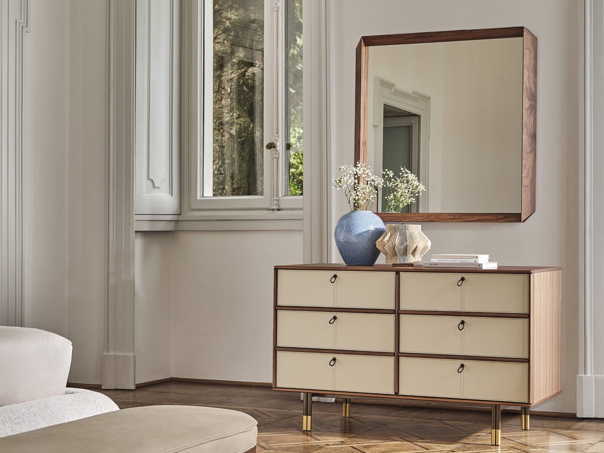 Der Fortyfive Spiegel von Porada ist ein dekoratives Designobjekt, das sich perfekt in jede Art von Einrichtung einfügt – egal ob für Zuhause oder im Objektbereich. Fortyfive besticht durch seine besondere Geometrie und die perfekte Balance zwischen Tradition und Innovation. Seinen Namen verdankt er dem markanten 45°-Schnitt an allen vier Ecken, der eine durchgehende Linie im Rahmen erzeugt und die Illusion eines Holzbandes schafft, das sich elegant um den Spiegel legt.