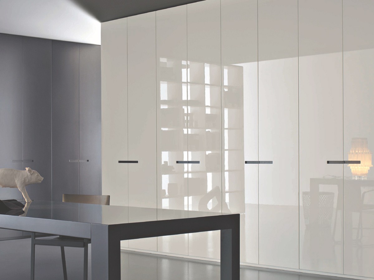 Wenn Sie einen eleganten Schrank mit minimalem Design suchen, der zu den Abmessungen Ihres Schlafzimmers passt, ist der von Officinadesign Lema entworfene maßgefertigte Kleiderschrank Elegant die ideale Lösung. Die essentiellen Linien des Schranks unterstreichen die Raffinesse eines Möbelstücks mit einem raffinierten Charakter, der durch die glänzend und matt lackierten Türen unterstrichen wird. Das schlichte Layout des Schranks wird nur durch den diskreten Griff unterbrochen, der essentiell und mit klaren Linien aus den Türen herausgearbeitet ist.