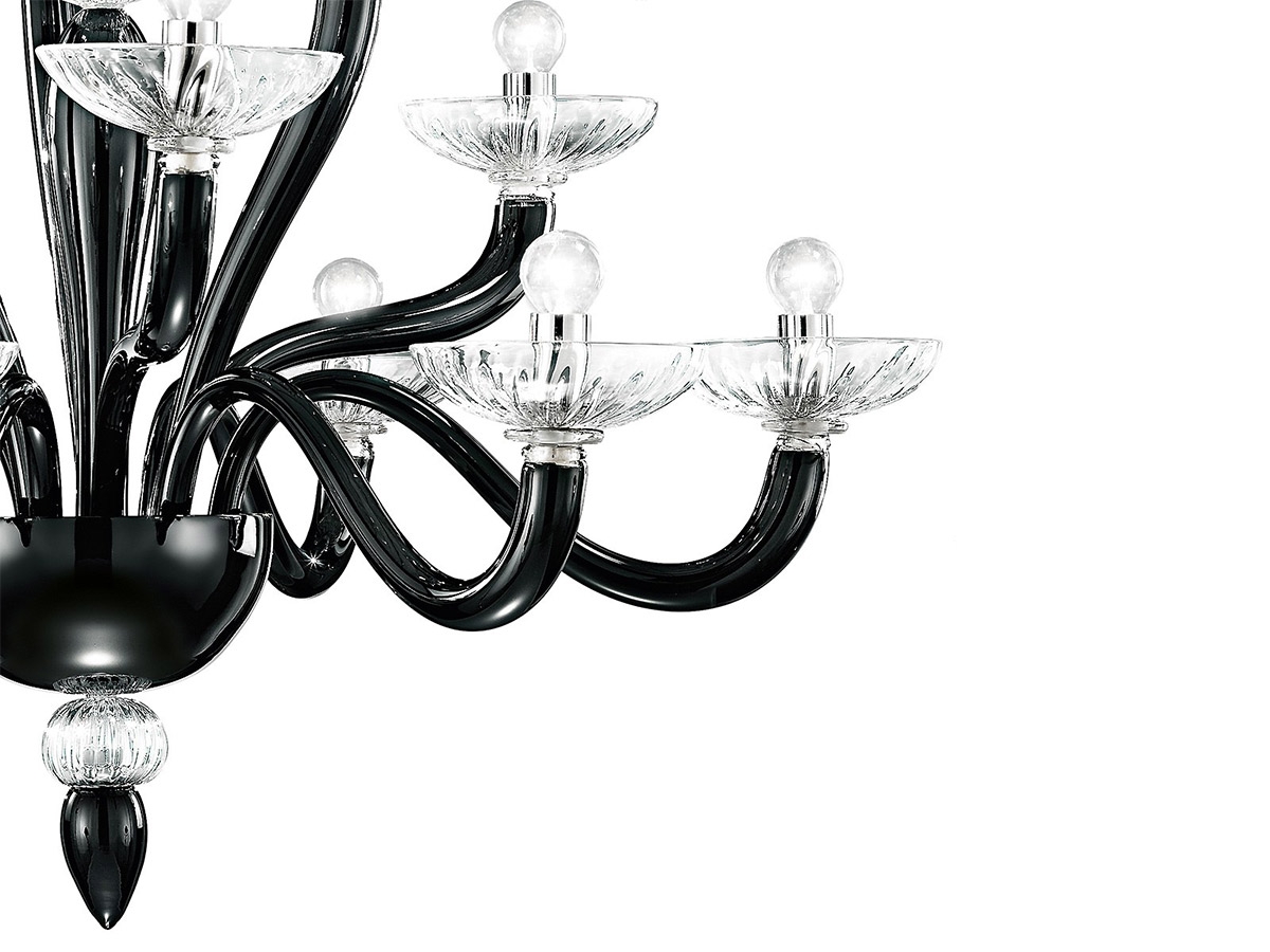 8000 K6+3+3 by De Majo proves that Murano glass chandeliers do not come along with a traditional design. Although the shape of this masterpiece has a classic structure, its coloring is modern and unconventional. With this chandelier the light becomes a perfect accessory for your living room. It is possible to have it also with a clear, red or white milk Murano glass frame. Contact us today: our designer team will help you with suggestions for free.