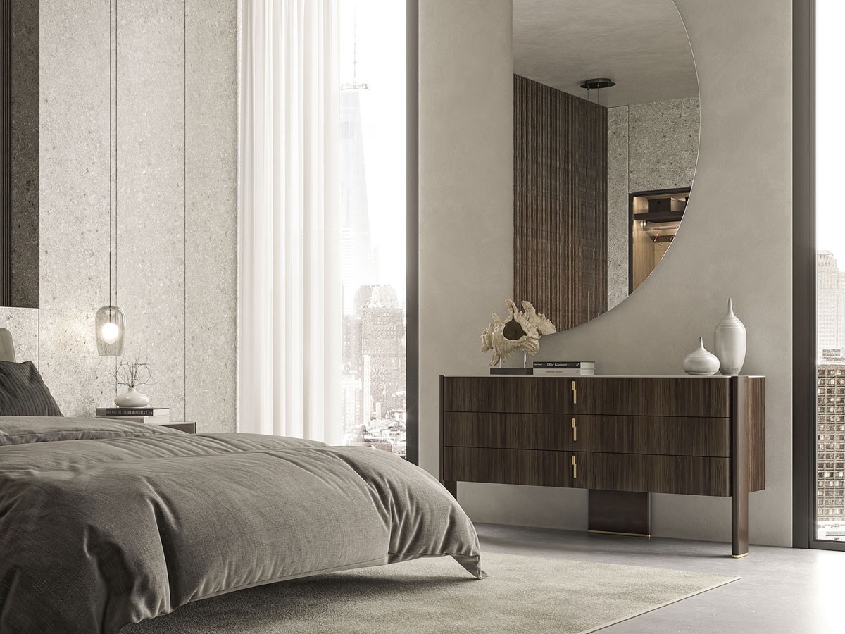 Die Kommode Julian von Cattelan Italia, entworfen von den Designern von Tosca Design, ist eine Augenweide! Die kluge Kombination von so unterschiedlichen Elementen wie Holz, Keramik und Stahl macht dieses Möbelstück modern und unvergesslich. Die Kommode Julian ist Teil der gleichnamigen Schlafzimmergruppe, die sich durch ihr modernes und elegantes Design auszeichnet.