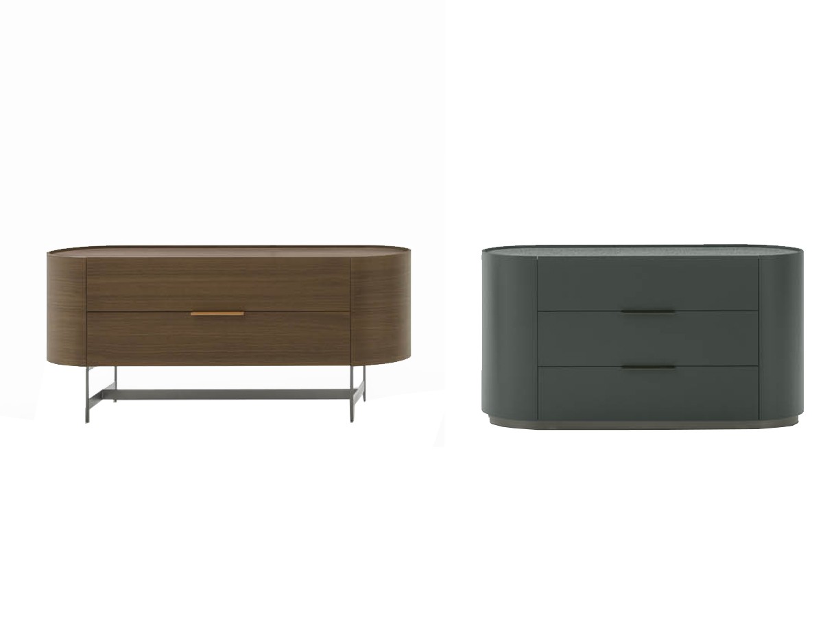 Die Kommode Dedalo von Pianca ist ein Möbelstück mit einem eleganten, vielseitigen und charmanten Design. Ihre Linien erinnern an die Form eines Zylinders, der durch raffinierte Ledergriffe aufgewertet wird. Eines der Hauptmerkmale der Kommode Dedalo ist die praktische Aussparung im oberen Teil des Volumens, die als funktionelle und vielseitige Ablagefläche konzipiert ist.