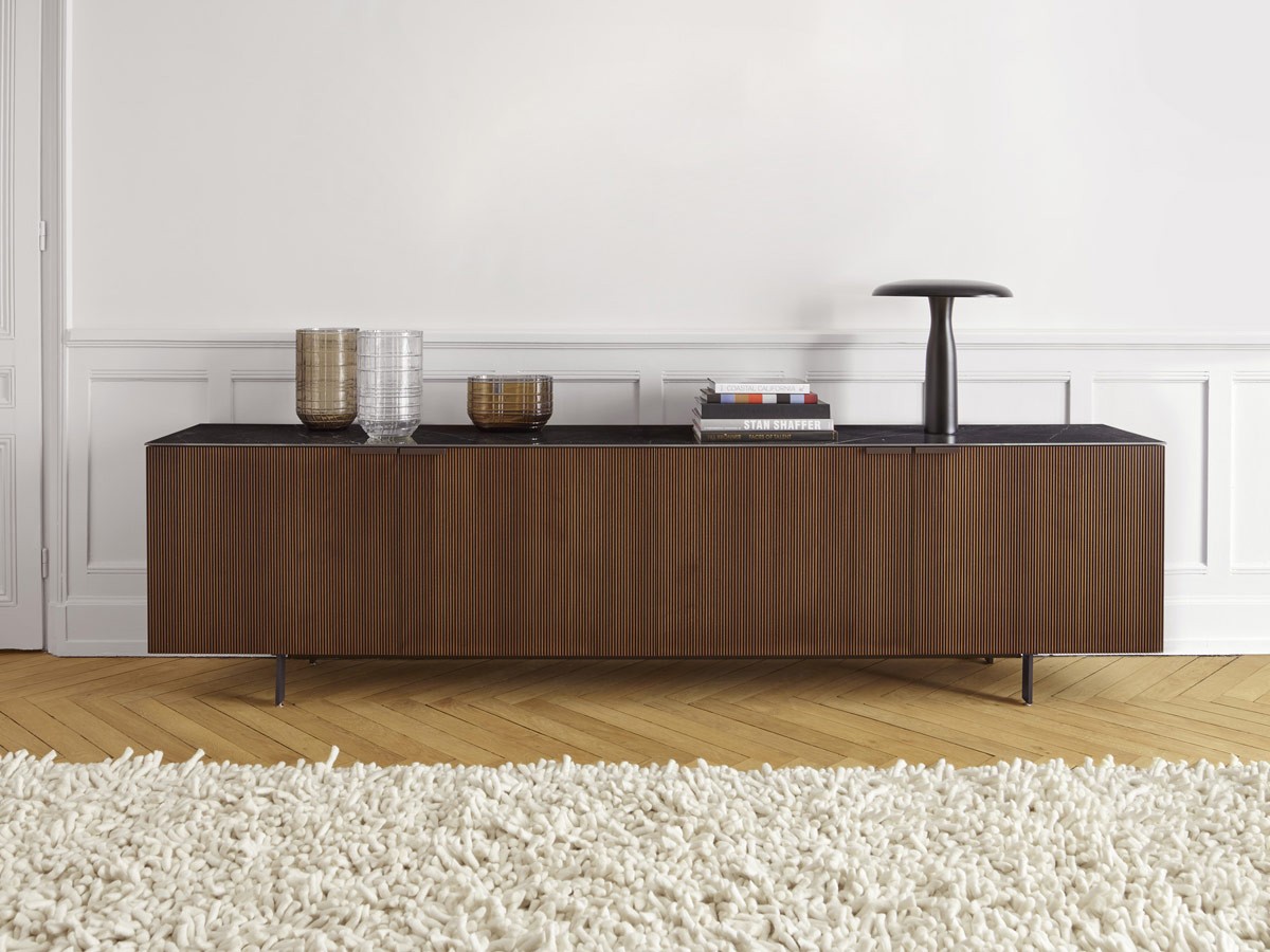 Das Selvans Sideboard von Ligne Roset ist das perfekte Möbelstück für Liebhaber von Luxus und raffiniertem Design. Unverwechselbar durch die Fronten und Seiten aus dunklem, geriffeltem Nussbaumholz, zeichnet sich das Selvans Sideboard auch durch eine Platte aus Feinsteinzeug und eine breite Palette von Anpassungsmöglichkeiten aus. Das vom Designer Christian Werner entworfene Selvans Sideboard bringt einen Hauch von moderner Eleganz in Ihr Zuhause und ermöglicht es Ihnen, Ihr Geschirr zu organisieren und Ihre wertvollsten Gegenstände aufzubewahren.