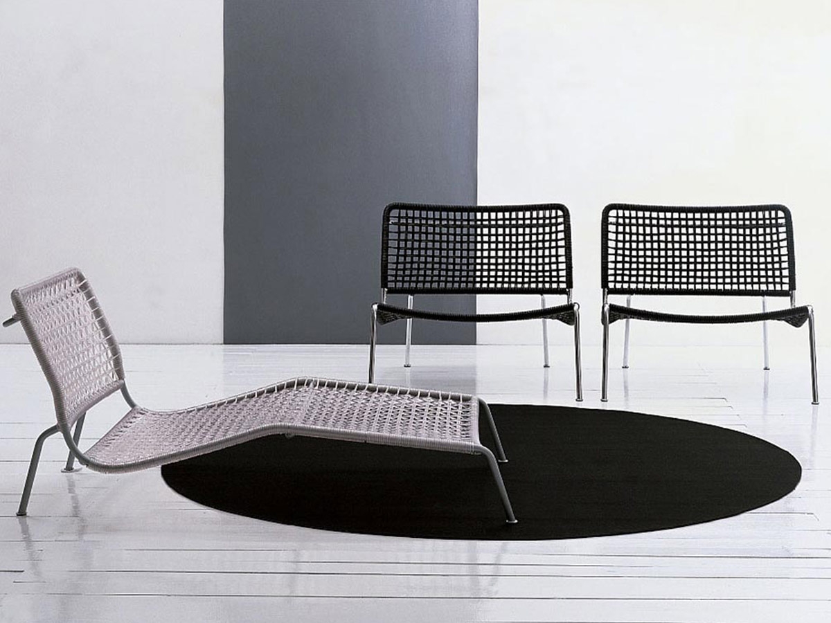 Carbon Frog by Living Divani is an armchair with an essential and modern design. It has a frame in carbon fiber. Woven with black or red flat polyester cord.