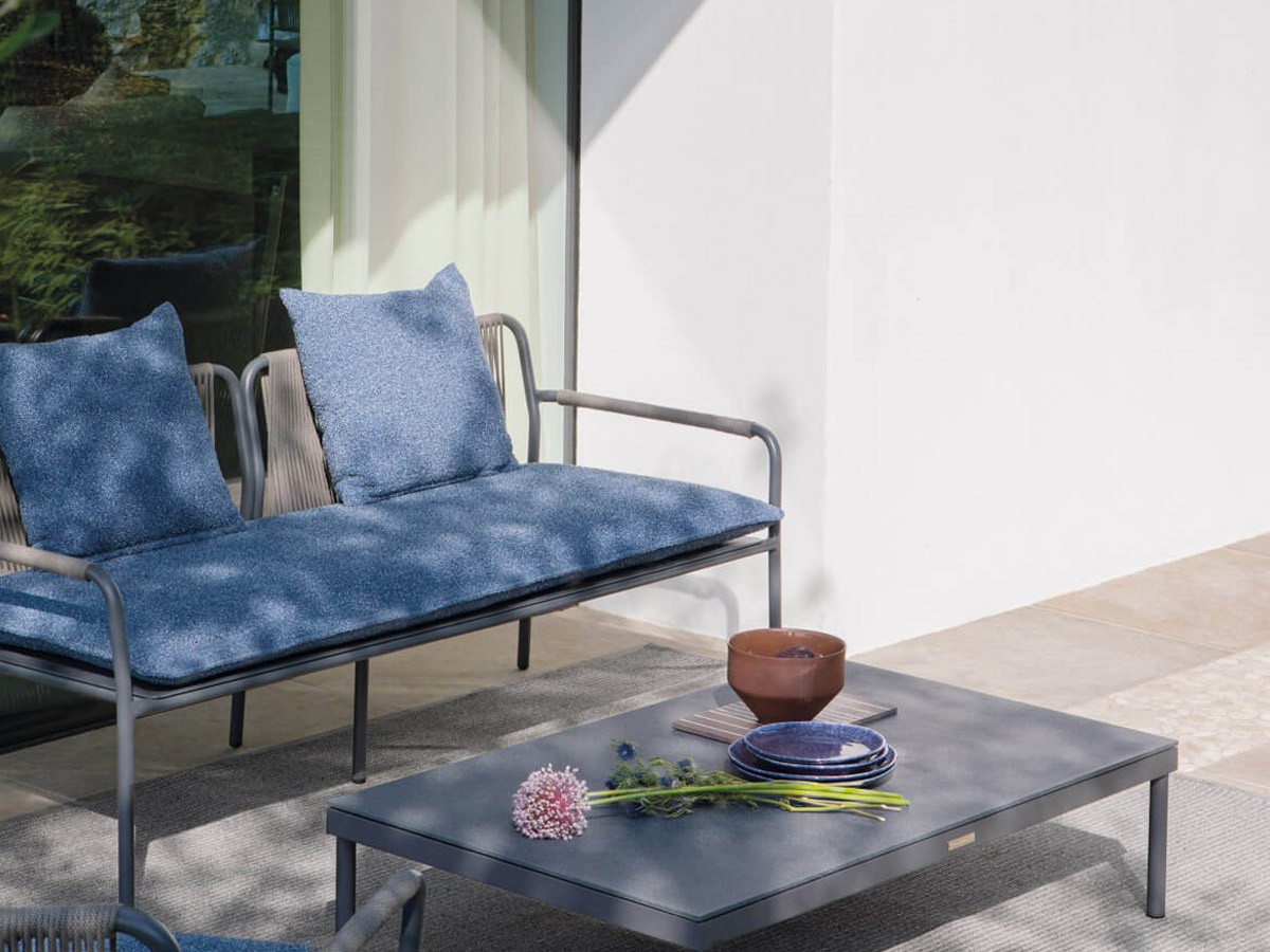Atmosphera Creative Lab hat das Sofa Air für die Marke Atmosphera entworfen. Sein zeitloses Design und sein geringes Gewicht machen es zu einem perfekten Möbelstück für alle Außenbereiche, sowohl im Wohn- als auch im Objektbereich. Das Sofa Air zeichnet sich durch seinen handgeflochtenen Rücken aus, der die Rückenlehne bildet und den Armlehnen einen Hauch von Eleganz verleiht.