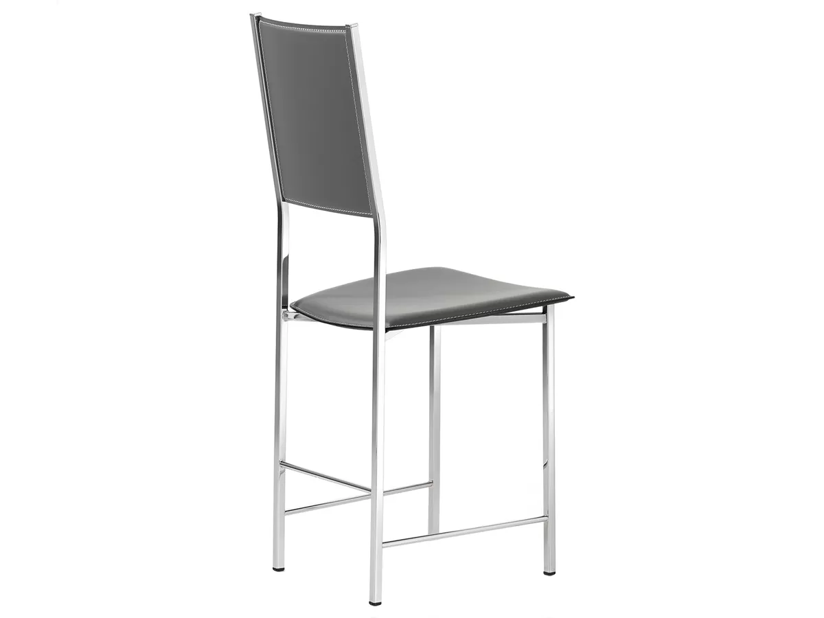 Alessia chair, by Cà Nova Design for Cattelan Italia, with slender and simple steel structure combined with leather seat and back.