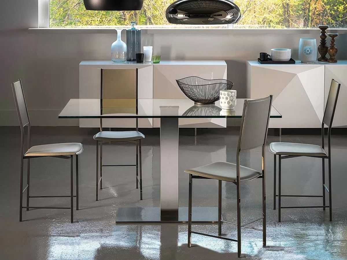 The Alessia chair, designer Cà Nova Design for Cattelan Italia, is a particular beauty because of its modern lines. The slender and simple steel structure is combined with leather seat and back, that gives it a little touch of elegancy. Perfect for the kitchen or the less formal dining room.