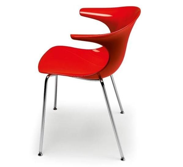 Loop chair by Infiniti Design is composed by a single piece with armrest made of SAN, 3D wood or fabric and by bases in different models (chromed / satin-finished steel; aluminium; solid beech). It is a high quality chair both for the materials used and for the crafting and design technique used. Loop is perfect to furnish modern environments like total look elegant living rooms characterized by neutral colours or, for a more playful and lively result, by matching brighter colours together; the model with spoke base is also suitable for an home-office.