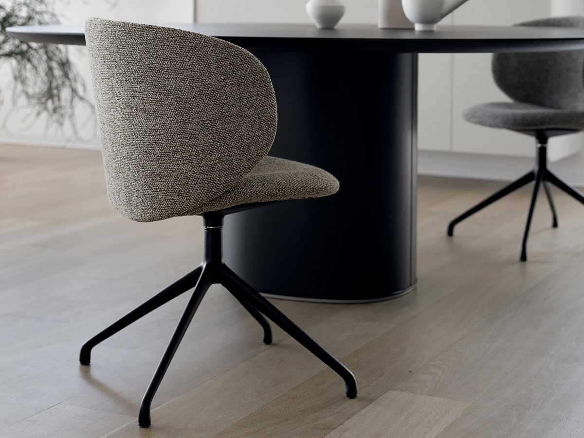 Der Dua Stuhl von Kristalia ist die Idee des Berliner Studios Läufer & Keichel, ein Möbel mit weichen, einladenden Linien zu entwerfen. Der Name ist eine Anspielung auf die Zahl zwei, die sich durch die beiden elliptischen Flächen der Sitzfläche und der Rückenlehne, die sich sinnlich um die Sitzfläche dreht, durch das gesamte Design zieht.