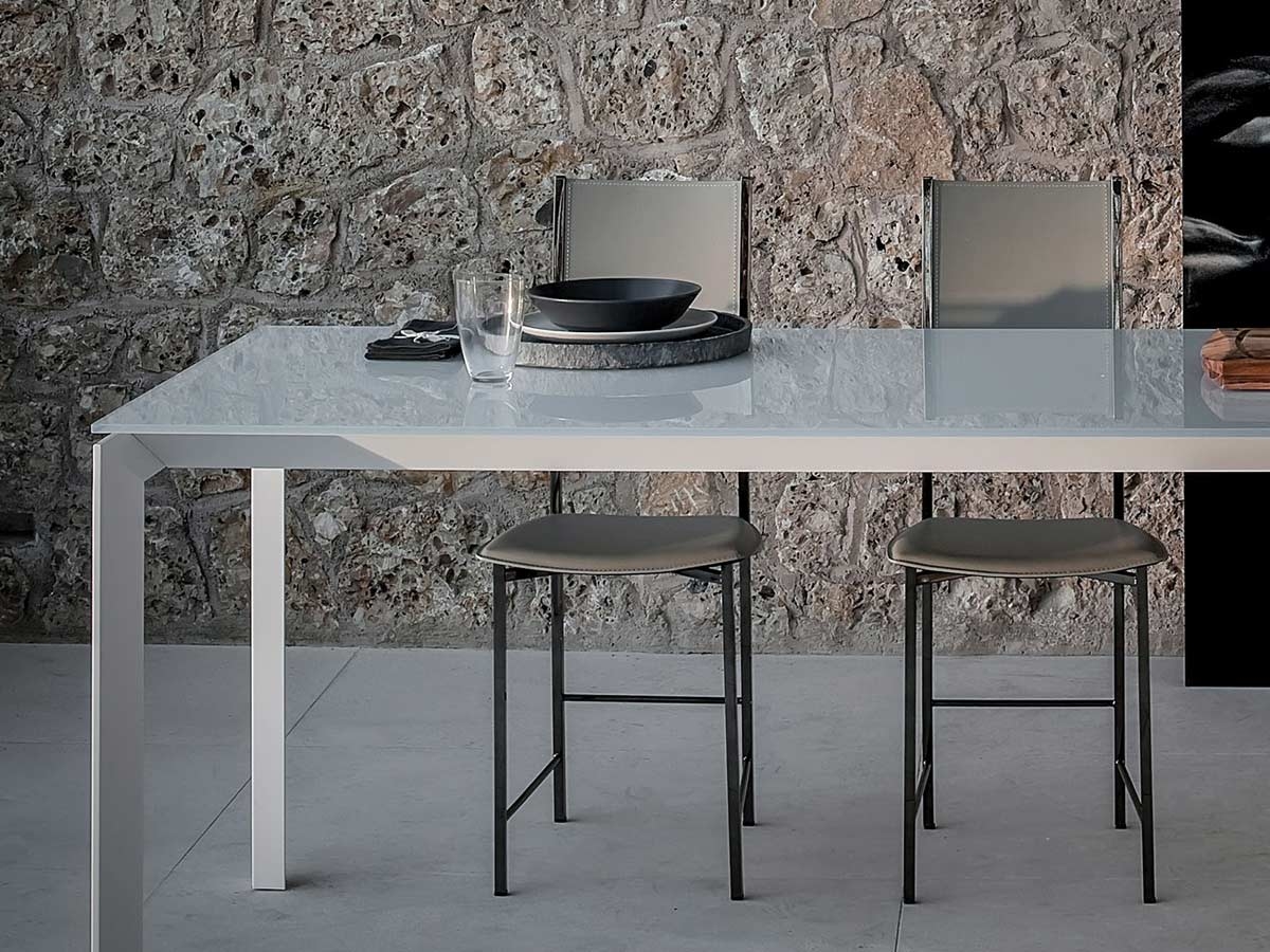 The Alessia chair, designer Cà Nova Design for Cattelan Italia, is a particular beauty because of its modern lines. The slender and simple steel structure is combined with leather seat and back, that gives it a little touch of elegancy. Perfect for the kitchen or the less formal dining room.