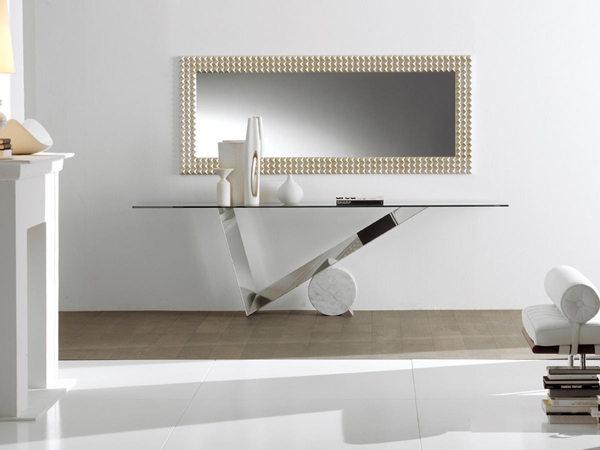 Valentinox Console is the perfect solution to create a little design corner. The steel base and the marble cylinder match perfectly with the clear glass top. Available in different sizes and finishes. It is possbile to have it also with a smoked glass top. Contact us for more information.