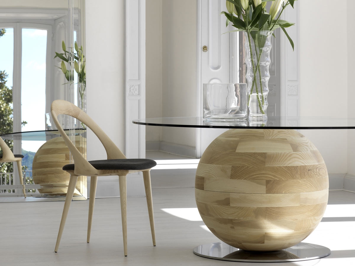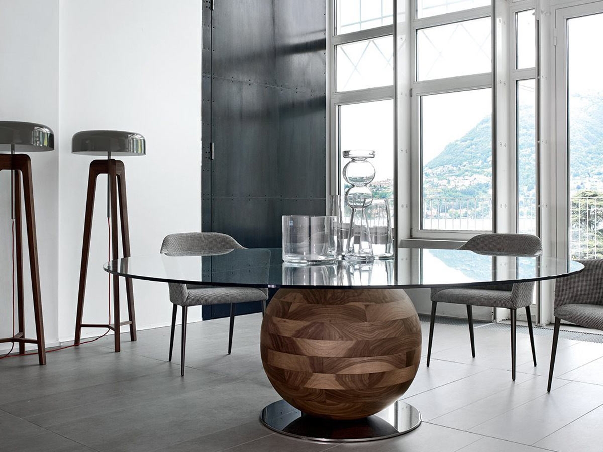 Wenn Sie auf der Suche nach einem Designer-Esstisch sind, der einen Hauch von Eleganz in Ihren Wohnbereich bringt, ist der Gheo Tisch von Porada die perfekte Lösung für Sie! Gheo ist einer der beliebtesten Tische von Porada und stellt eine echte Designikone dar, die in Italien mit Leidenschaft und hochwertigen Materialien hergestellt wird. Der kugelförmige Massivholzsockel und die Kristallplatte schaffen ein perfektes Gleichgewicht zwischen starker Persönlichkeit und visueller Leichtigkeit.