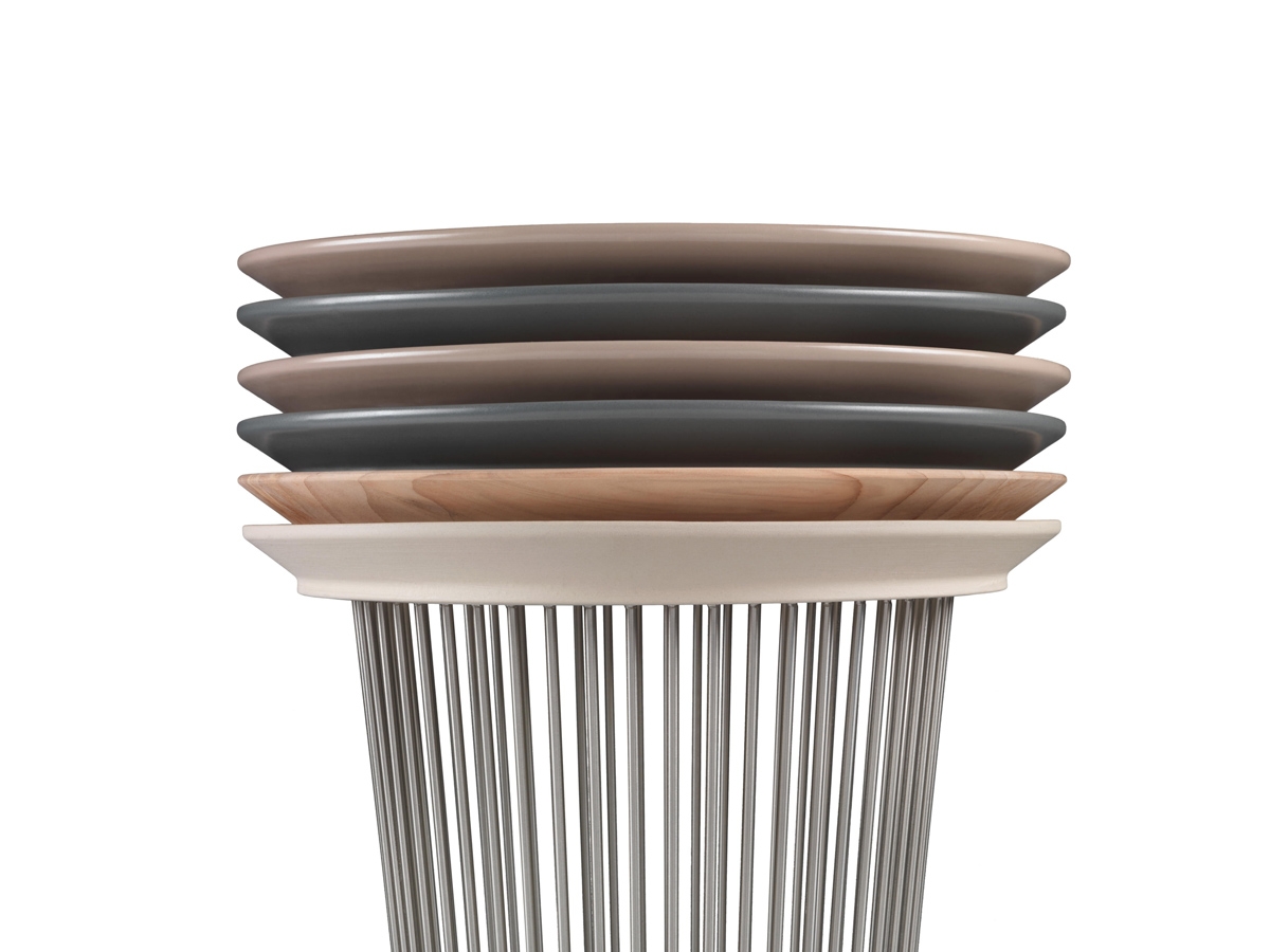 Berry outdoor besteht aus einem Untergestell aus Leichtmetall, das sich durch ein minimalistisches Design auszeichnet, das eine Reihe von kleinen vertikalen Stäben bildet, und einer Keramikplatte in einer breiten Farbpalette.