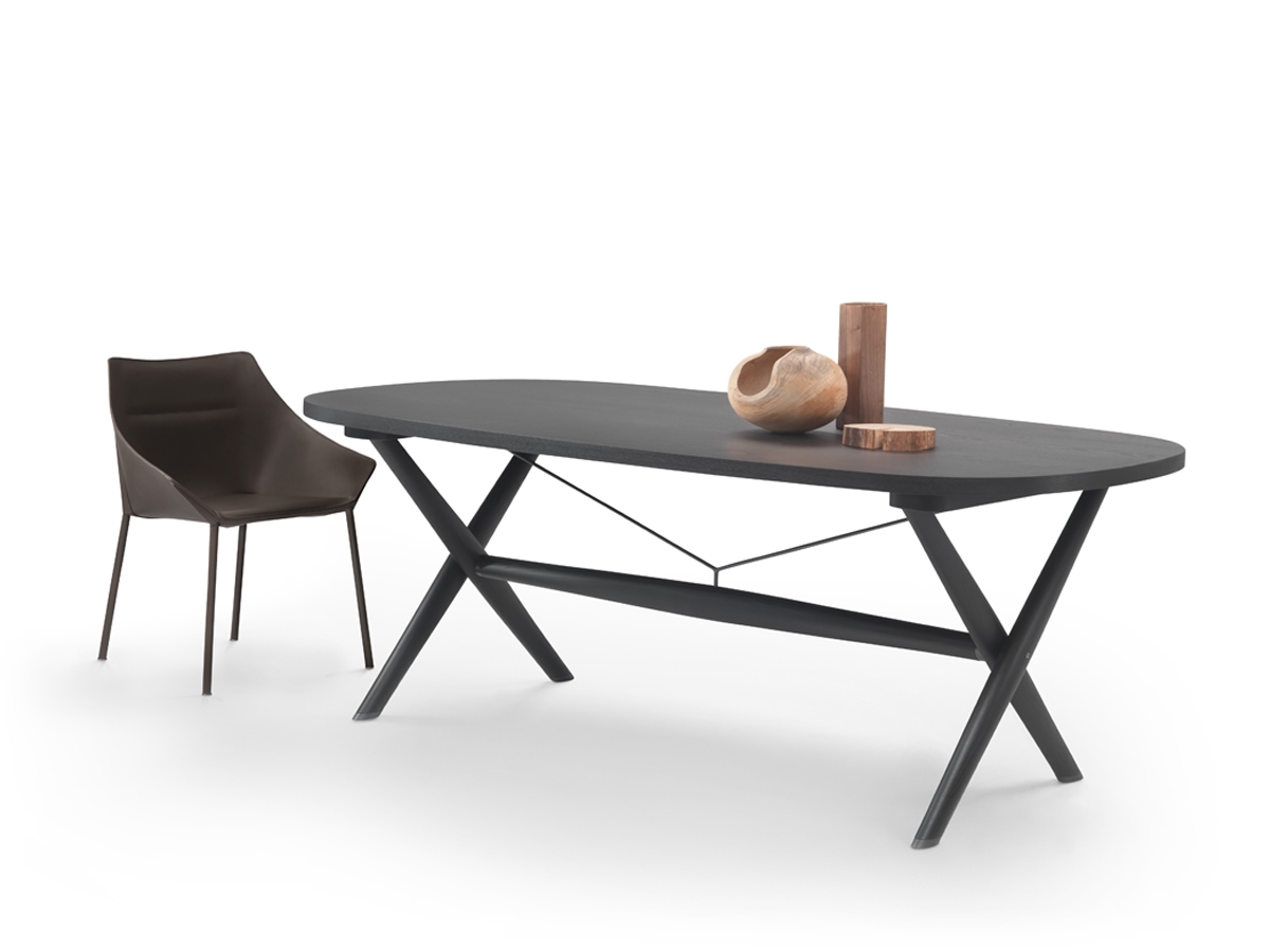 Auf dem Salone del Mobile 2022 präsentierte Flexform seine neuen Möbelelemente, darunter den Tisch Boma. Boma wurde vom Designer Roberto Lazzeroni entworfen und ist von der "komplexen Einfachheit" von Segelbooten inspiriert, bei denen Holz das am häufigsten verwendete Element ist. Das gilt auch für den Tisch Boma, dessen Platte aus Holz und Marmor besteht und auf einem massiven Gestell aus Nussbaum oder Esche mit elliptischem Querschnitt ruht. Das funktionelle und originelle Design ist das Hauptmerkmal von Boma und macht ihn für jede Art von Umgebung geeignet.