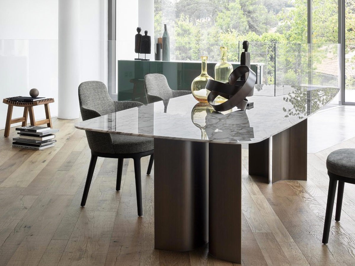 Wenn Sie auf der Suche nach einem Tisch sind, der funktionell ist und gleichzeitig einen skulpturalen Charakter hat, ist Gullwing von Lema genau das, was Sie gesucht haben. Gullwing wurde von Gabriele & Oscar Buratti entworfen und ist ein Tischsystem, das sich durch seine imposante Basis auszeichnet, die aus vier Flügelelementen besteht, die skulpturale Formen bilden, von denen Hell-Dunkel-Spiele ausgehen. Gullwing ist wie ein großer Felsbrocken konzipiert, der von der Zeit geglättet wurde und ein Ort des Austauschs und der Geselligkeit ist.