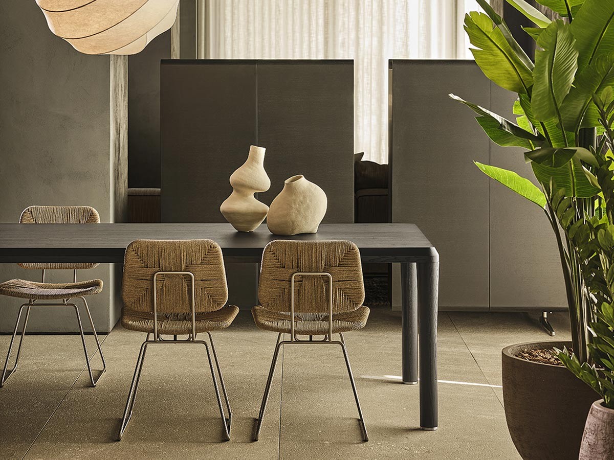 Schlichtheit und Robustheit. Das sind die beiden Hauptmerkmale des Tisches Kobo von Flexform, einer der neuen Einrichtungsvorschläge der Kollektion 2023. Der auf dem Salone del Mobile in Mailand vorgestellte Tisch Kobo von Flexform besteht aus einer Platte, die sich durch eine große Stärke auszeichnet, und gedrechselten Beinen, die ebenfalls einen großen Durchmesser haben. Die reinen und wesentlichen Linien bringen die ganze Schönheit und Materialität des Holzes zur Geltung, die bei diesem Tisch auf höchstem Niveau zur Geltung kommt. Er passt perfekt in jeden Essbereich und wird zum Star des Raumes, in dem er steht.