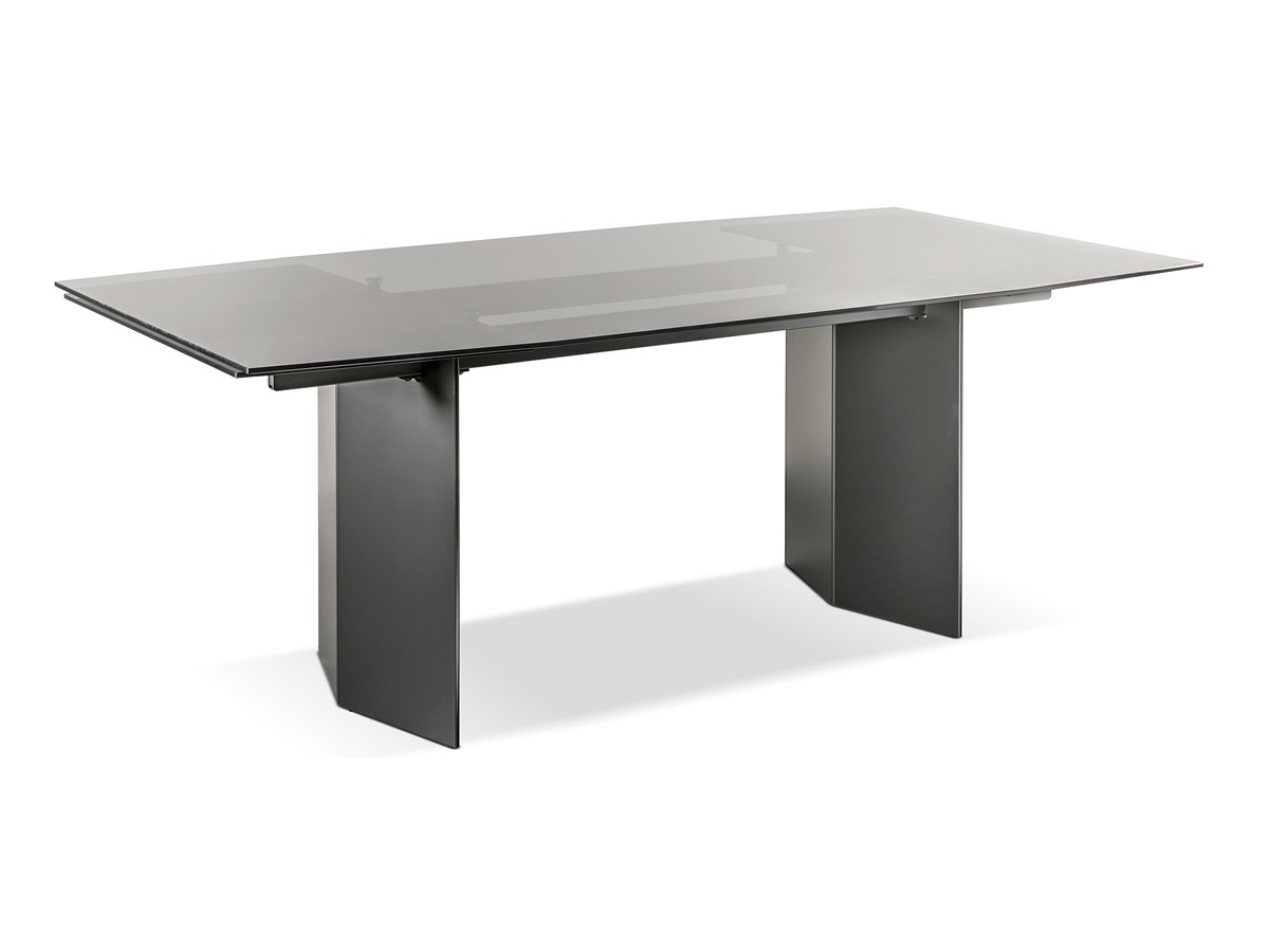 Wenn Sie auf der Suche nach einem ausziehbaren Esstisch sind, dann ist der Milton Tisch von Cantori die Lösung für Sie! Der vom Designer Luca Roccadadria entworfene Glastisch Milton ist sowohl in einer festen als auch in einer ausziehbaren Version erhältlich. Ein ausgeklügelter, aber einfacher Mechanismus sorgt dafür, dass die Verlängerungen mit Leichtigkeit bewegt werden können. Der Tisch zeichnet sich durch seine prismatische Form aus, die ihn praktisch, funktionell und stabil macht.