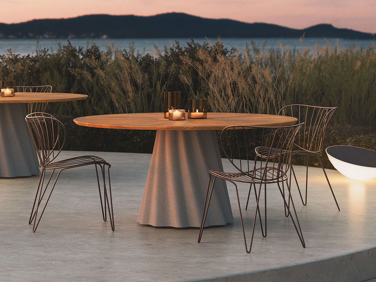 Der Tisch Onda von Pianca ist das Ergebnis eines Entwurfs des Designers Pier Luigi Frighetto, der neue Materialkombinationen und formale Möglichkeiten auslotet. Der ideal vom Wind geformte Tisch Pianca Onda ist das perfekte Möbelstück, um den Essbereich in den Außenbereichen Ihres Hauses zu vervollständigen. Mit seinem fließenden und geschwungenen Design nutzt der Tisch Onda alle ästhetischen und technologischen Besonderheiten des Ductal-Betons und des Iroko-Holzes, das für die Platte zur Verfügung steht.