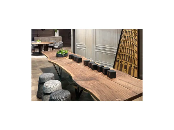 Arte Brotto chooses the best raw material, studying the bark to accommodate the natural edges of the logs, enhancing delicately the grain and keeping the nodes. The two boards that compose the top, are obtained from a trunk, are joined with special joints, made by hand one by one. Finishes and refined accessories nourish your style and your emotions, unique and personal.