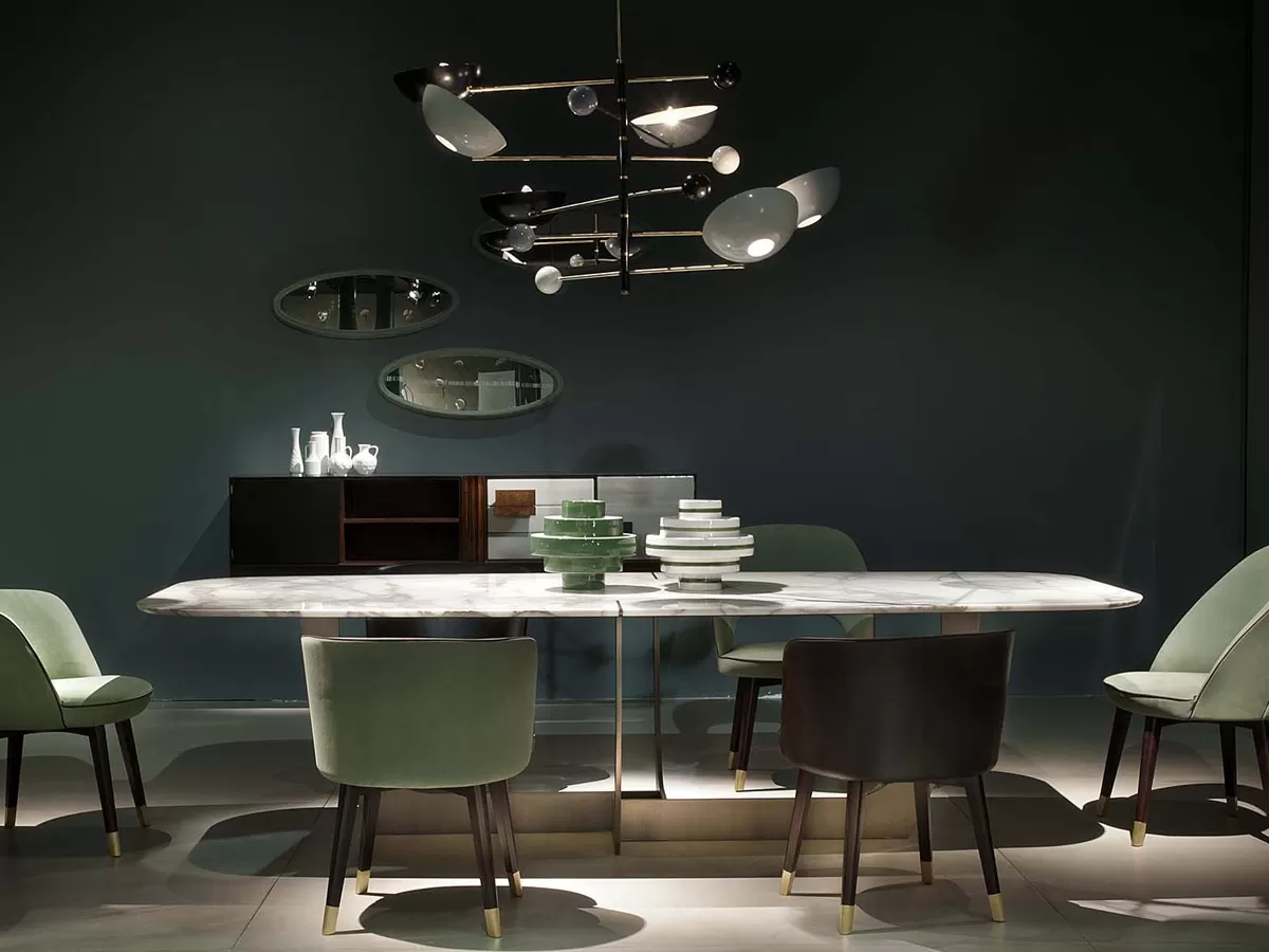 Aesthetics, form and function. These are the three main features of Romeo, the Baxter marble table created to be the star of the dining area. Entirely handmade by the expert Baxter master craftsmen, known for producing furnishings that combine quality and design. The marble top, available in different shades, together with the metal base creates a perfect balance between strength and elegance. An interior design masterpiece, available online for you on Mobilificio Marchese.