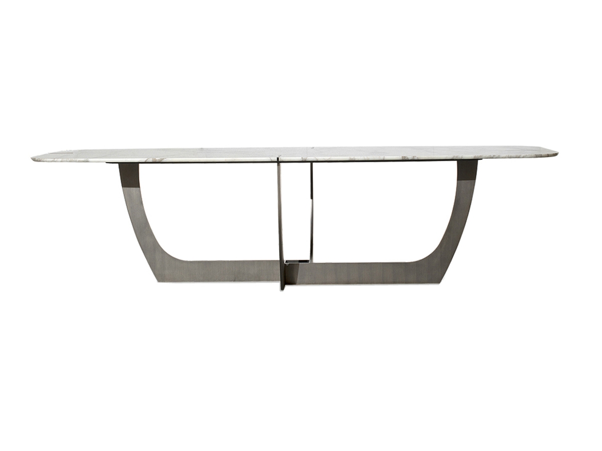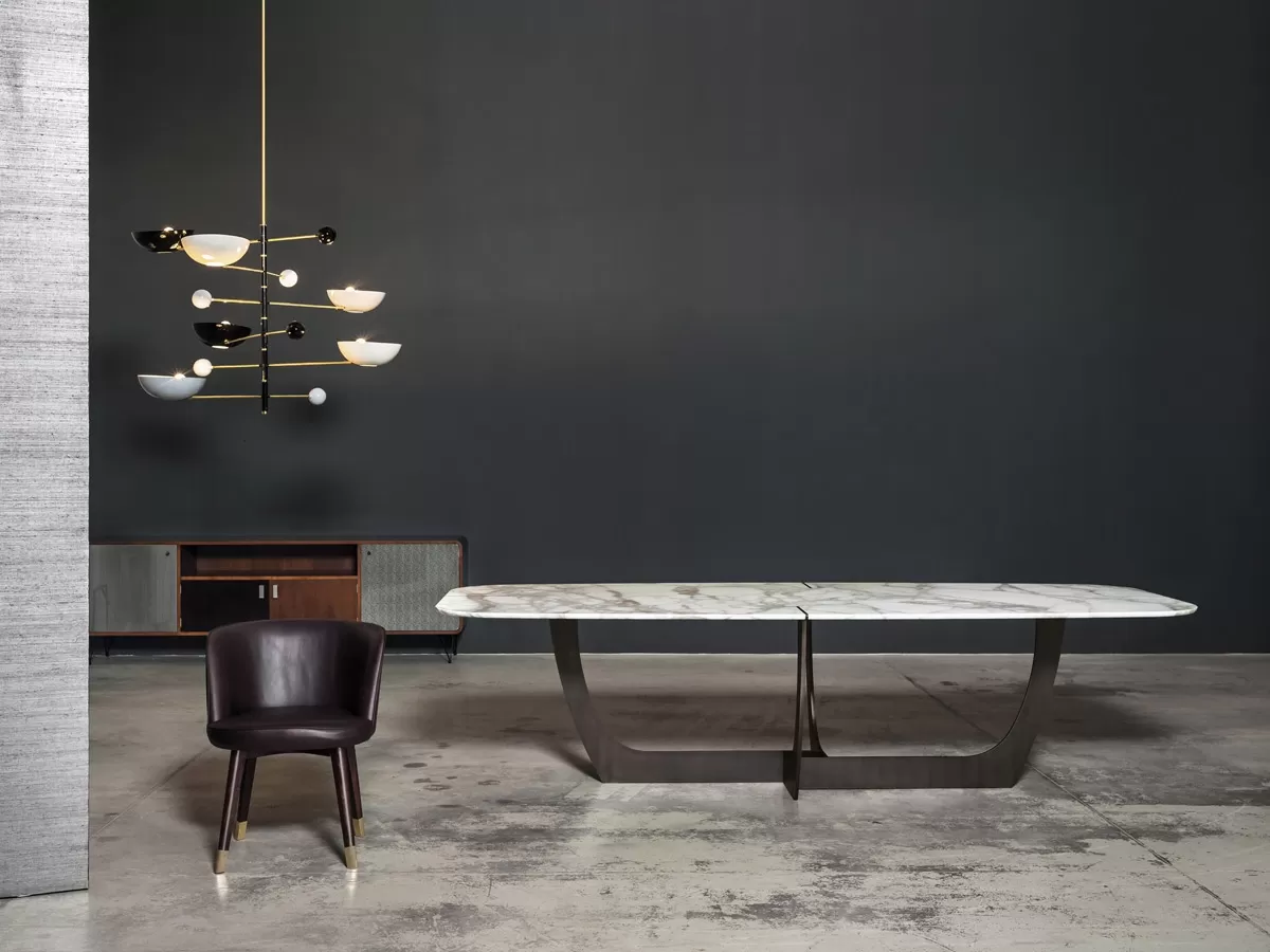 The Romeo marble table is a unique piece of furniture. Ideal for decorating a modern dining area, and be combined with chairs and lamps with metal details, which match perfectly its base. The rigorous style makes it perfect also as a meeting table, inside a spacious office area.