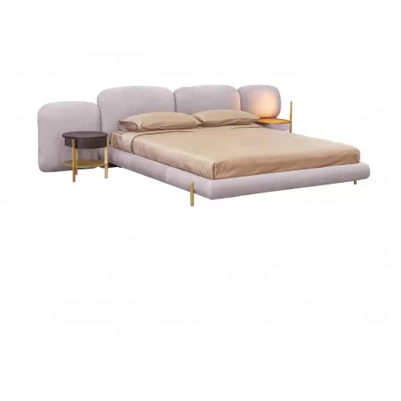 The softness of the leather that surrounds the entire bed giving a unique feeling of comfort and welcome is combined with the elegance of the brass-plated metal with which the bedside table structure and the bed feet are made.
