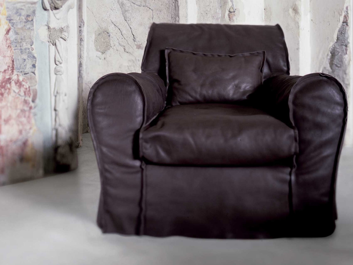 Housse premium leather Armchair, design by Paola Navone, handmade in Italy by Baxter.