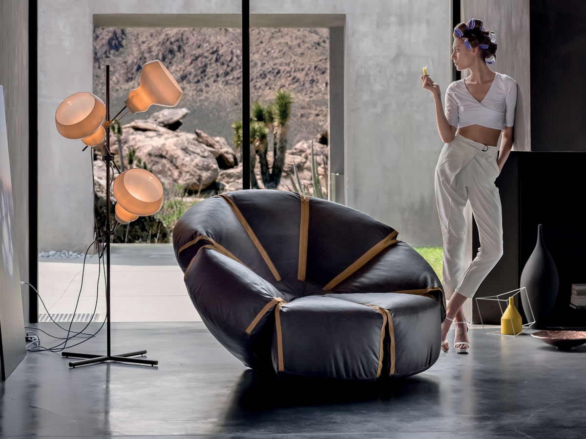 LOL:) is a modern armchair with a young design. Its form reminds a flower and make this piece of furniture unique and cool. Covered in leather or fabric.