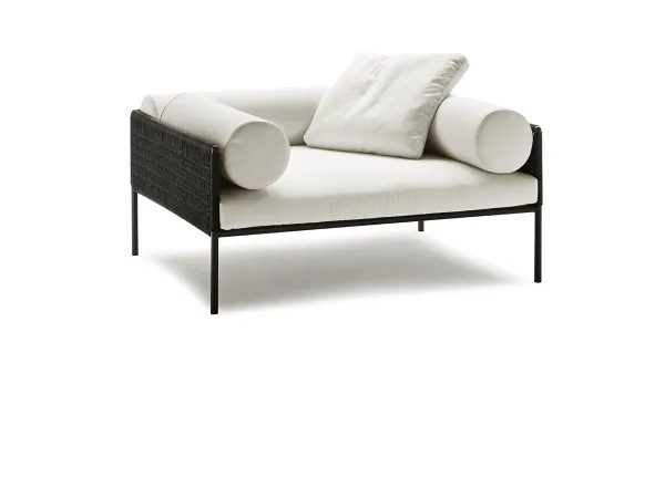 The Living Divani Era sofa is a design element that challenges gravity. Its slender and agile legs seem not to be strong enough to support the weight, revealing in such a way a careful and balanced study of weights and measures by the designer. Its steel backrest and the seat in tubular steel will welcome you to a soft seat, padded with polyurethane foam, supported by slender steel feet. The upholstery is available in both leather and fabric, fully removable by zippers and Velcro fastenings.