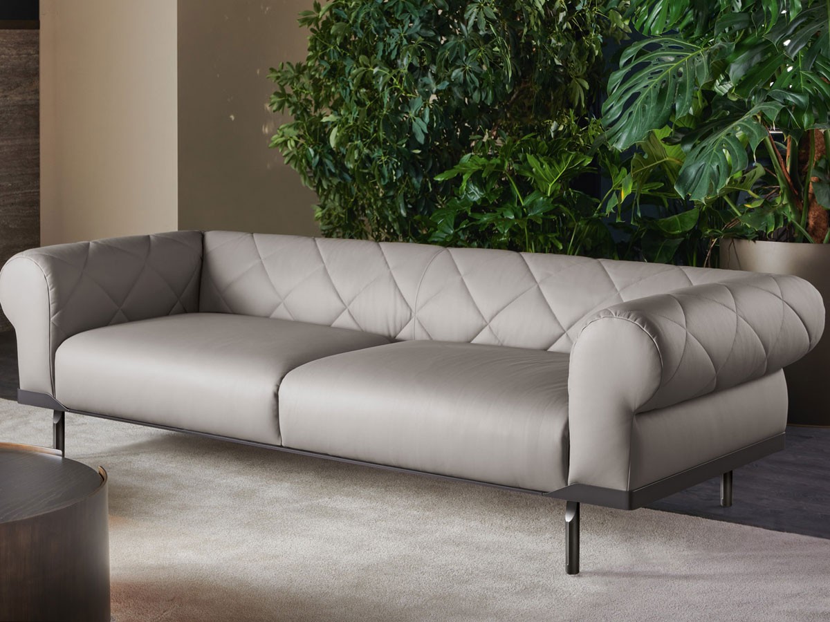 The Gregory sofa by Cantori, designed by Maurizio Manzoni, is a piece of furniture that stands out for its linear and minimal design. Created as a reinterpretation of the classic Chester model, the Gregory sofa is enriched by quilting that covers the back and armrests.