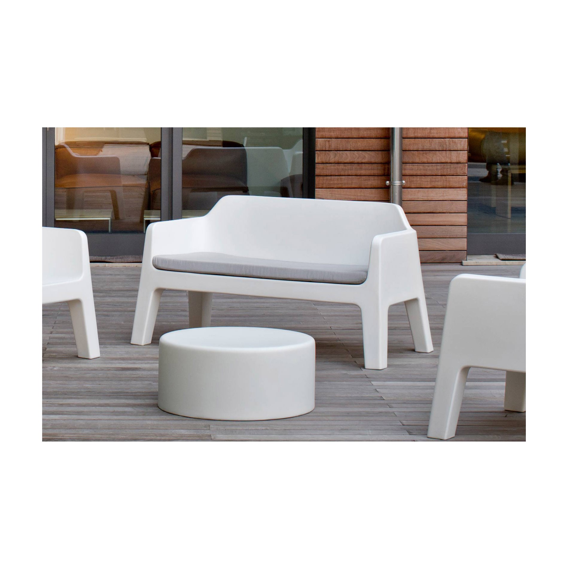 Simplicity and versatility are the peculiarities of Plus sofa by Pedrali. Designed by Alessandro Busana, this sofa is the perfect balance between functionality and design. The Plus sofa is made from a polypropylene moulded one piece structure. Suitable both for indoor and outdoor areas.