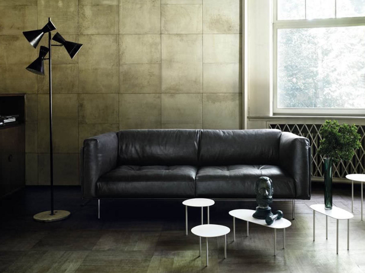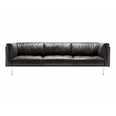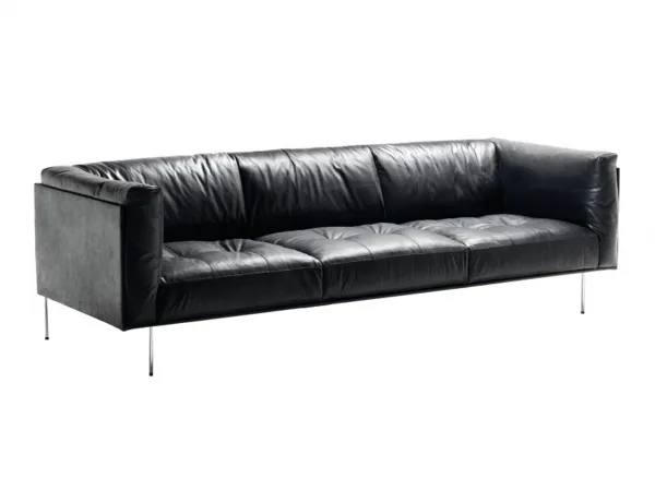 Rod by Living Divani is a modern sofa with a light steel base and an airy shell, lined with inviting cushions enhanced with quilted details and buttons at sights. Fabric or leather upholstery, both fully removable by zippers and Velcro fastenings. Available in different colors and sizes.