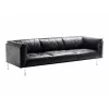 Supporting structure in lacquered drawn tubular steel, seat sprung with coated rubber elastic straps and polyurethane foam. Backrest and seat cushions in prewashed and sterilized goose down, with polyurethane foam insert. The seat cushions are quilted with buttons at sight or, on request, quilted without buttons. Armrest cushions in polyurethane foam covered with prewashed and sterilized goose down. Stainless steel feet. Fully removable by zippers and Velcro fastenings.