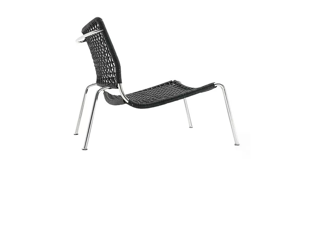 Carbon Frog by Living Divani is an armchair with an essential and modern design. It has a frame in carbon fiber. Woven with black or red flat polyester cord.