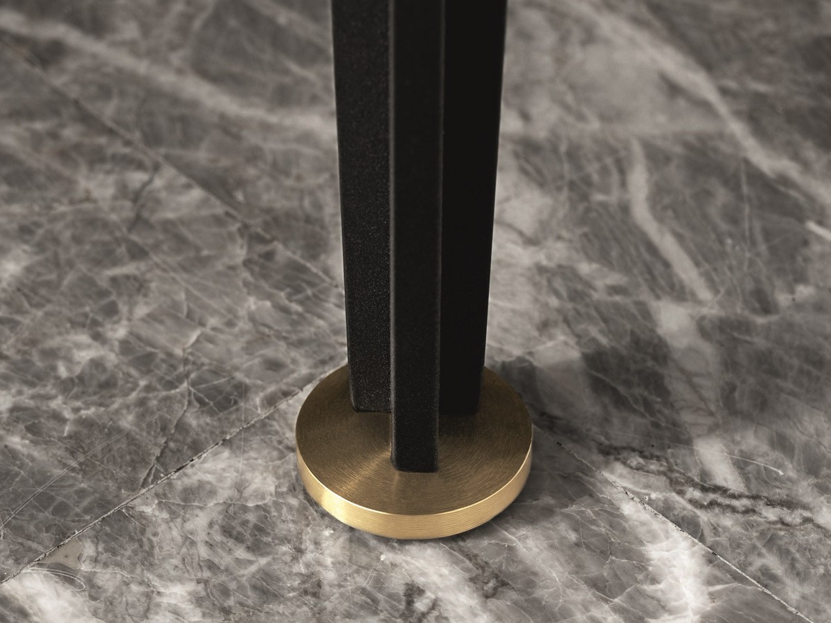The Floyd-Hi bed by Living Divani is a furnishing accessory designed by Piero Lissoni, which stands out for its large, soft cushions that rest on the lower headboard, creating a play on heights and joints. Floyd-Hi is a bed with pure and elegant lines, also evident in the grey painted steel foot enriched with a satin-finished brass plate.