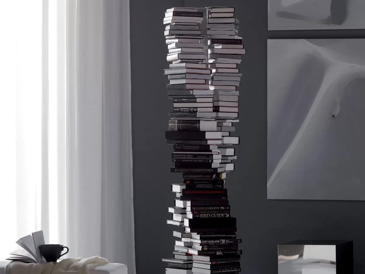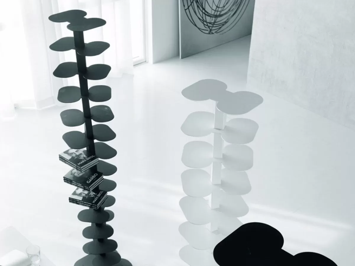 DNA is a free-standing bookshelf by Cattelan with a modern design. The structure and 13 shelves are fixed and made of painted steel and resemble the shape of the DNA spiral. Available in black or white.