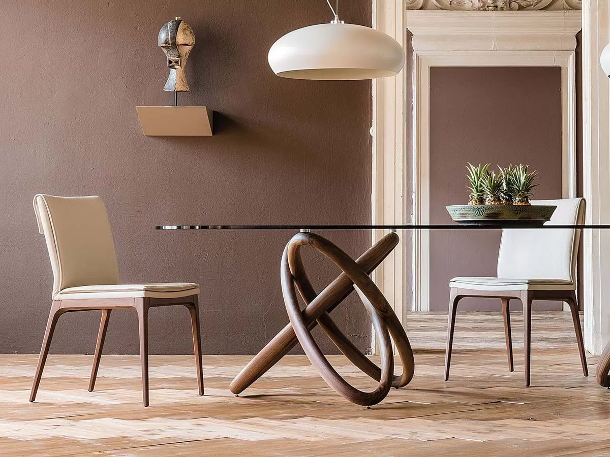 Sofia chair by Paolo Cattelan for Cattelan Italia. Modern and elegant, with steel structure, soft leather cover and wooden base.