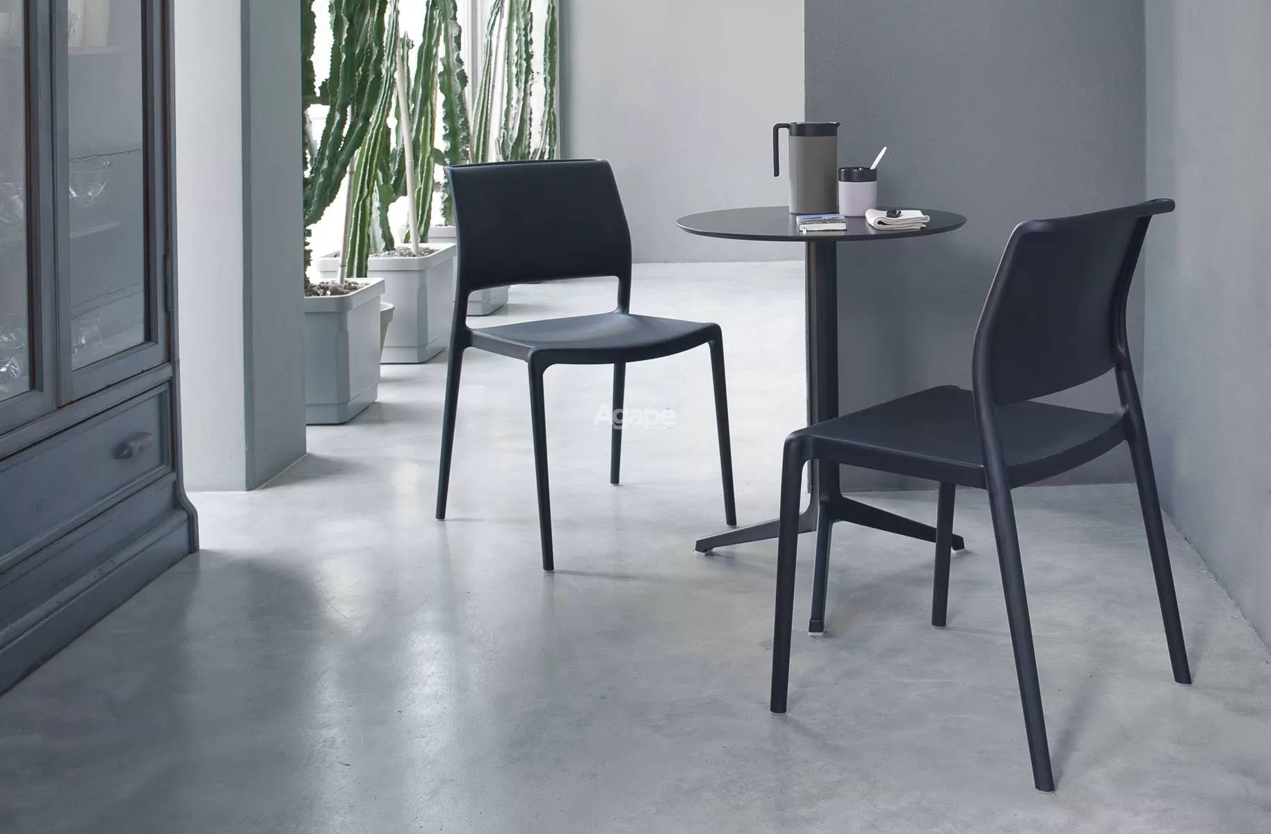 Ara is a polypropylene moulded chair reinforced with glass fibres. Designed by Jorge Pensi Design Studio stackable, this chair has a backrest with a particular structure that forms a big handle for an easy lifting and moving. Thanks to the tapered shape of the legs it’s light and elegant, although resistant and non-deformable. A product with a distinct character. Stackable. Suitable for both indoors and outdoors.