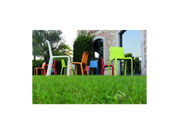 Snow chair by Pedrali, designed by Odo Fioravanti, is solid and light at the same time. Ideal for outdoor use, this chair is UV rays resistant and available in different colors.