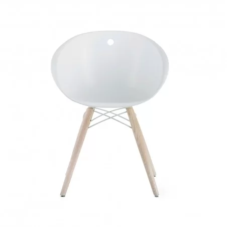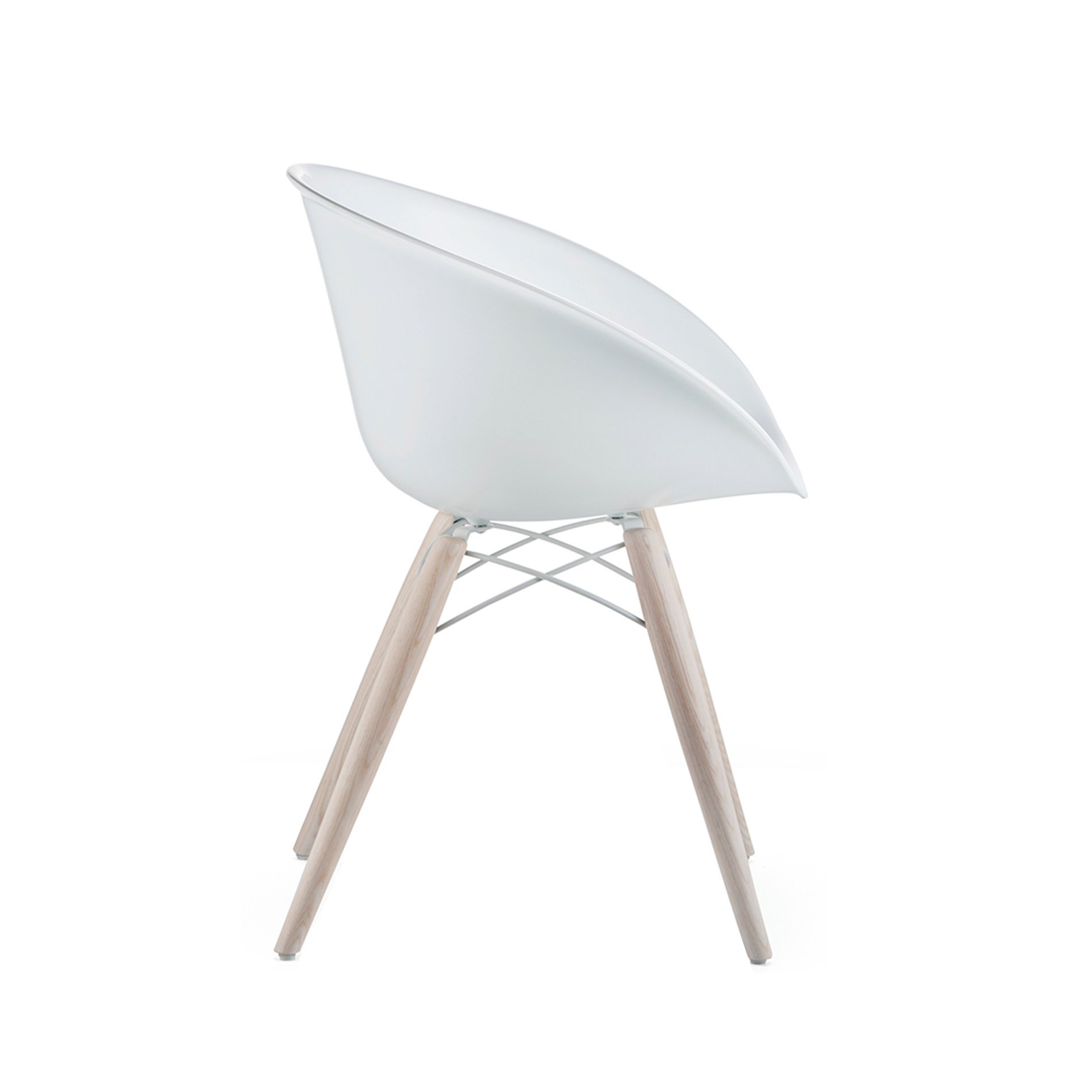 Gliss Wood chair, designed by Claudio Dondoli e Marco Pocci for Pedrali, is dedicated to those who want to relax without renouncing at functionality and elegance. Injection moulded technopolymer shell, the legs are in ash timber. The chair is so resistant and comfortable. The ash wood can be bleached or black stained, the tecnopolymer can be white or sand.