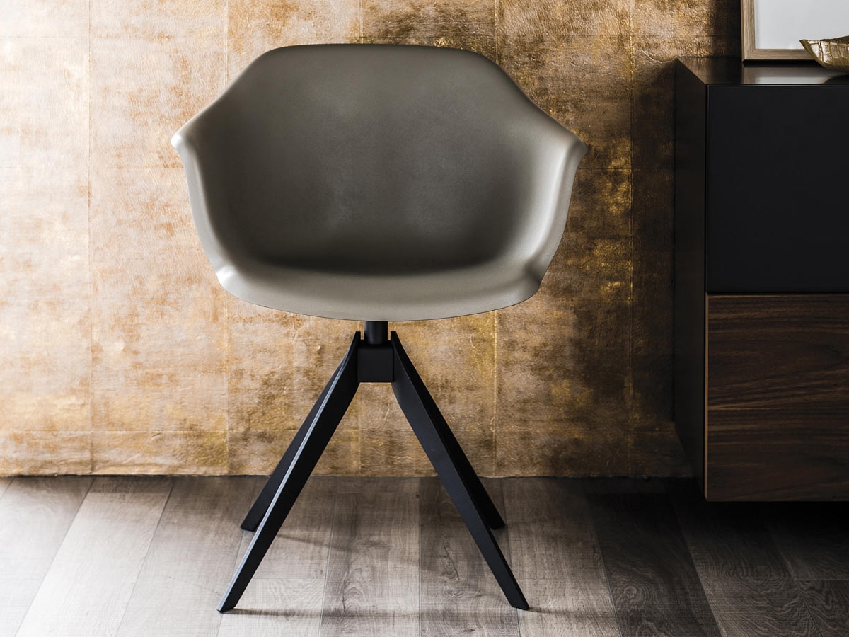 Indy 101 by Cattelan Italia is a polyurethane armchair with a modern design. It has a structure made in graphite, white or black embossed lacquered steel. Seat and back in monochrome polyurethane available in white, lino, fango, petrolio and antracite colors, or two-tone polyurethane back petrolio and front fango. It is possible to have it in the swiveling version.