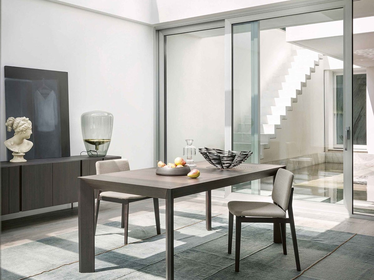 The Hati chair by Lema, designed by Piero Lissoni, recalls the idea of the classic chair reworked in a modern key. Hati is characterized by its sophisticated spirit and clean, essential design, without forgetting elegance. Hati is an extremely versatile chair, made so by its endless combinations: in fact, it is available with or without arms, with seat and backrest in fabric, leather, eco-leather, twine or if you prefer entirely in wood.