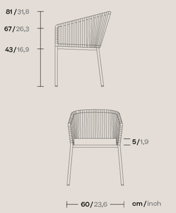 The Bitta chair by Kettal is an elegant and contemporary outdoor seat, designed to offer comfort and visual lightness in any outdoor setting. Designed by Rodolfo Dordoni, it stands out for its refined combination of an aluminum frame and polyester weaving, reminiscent of nautical ropes, giving it a natural and enveloping aesthetic. Cozy like a nest and perfect for outdoor dining areas, the Bitta chair harmoniously combines design and functionality.