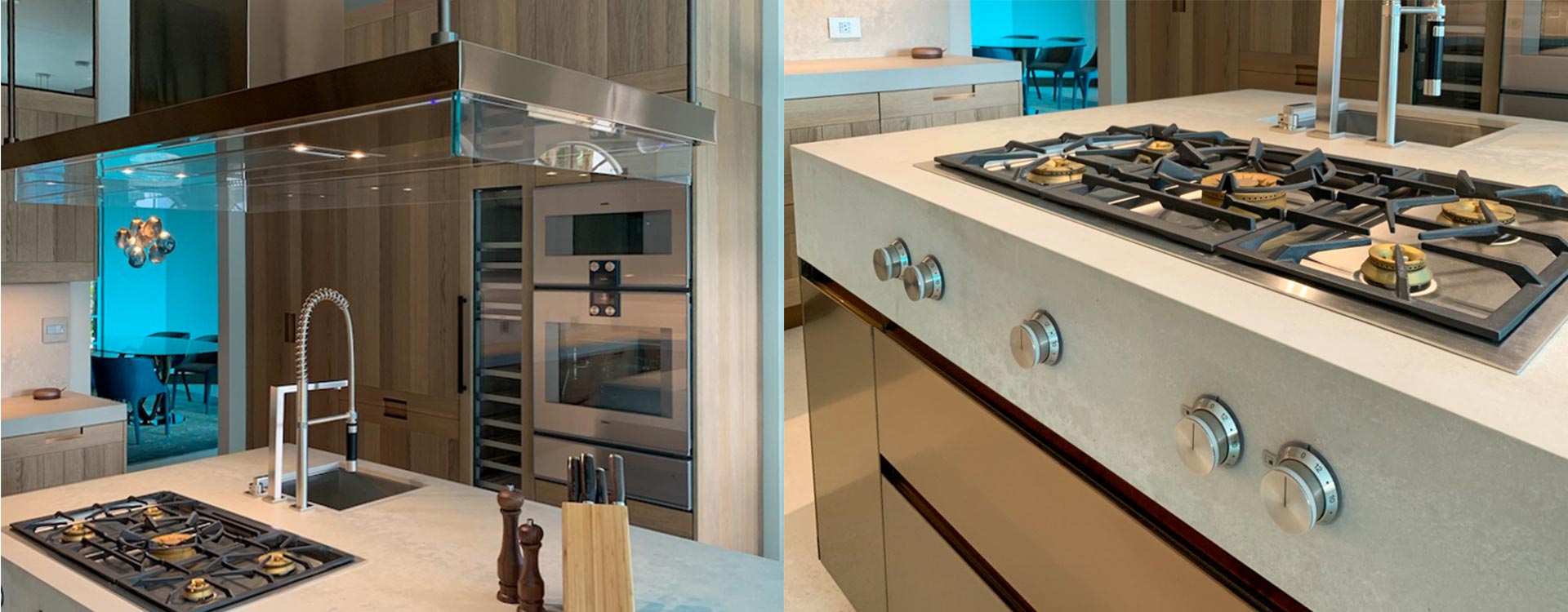The focal point of the space, the Convivium island stands out as a statement of refined design and functionality. Featuring doors in bronze PVD stainless steel and a worktop with an integrated recess crafted from 20 cm thick marble, it combines durability with timeless elegance. Designed to bring people together, this island offers generous space for preparing meals and sharing moments, making it the perfect setting for cooking and entertaining family and friends in a warm, convivial atmosphere.